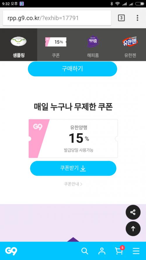 유한양행 15퍼센트 쿠폰 클릭하면 쿠폰받는페이지가 나오네요.