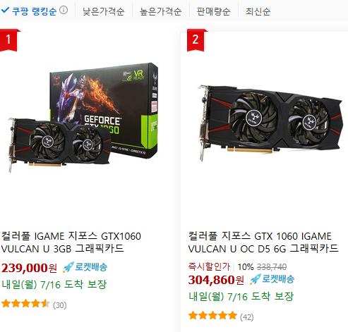 컬러풀 지포스 GTX 1060 IGAME VULCAN U OC D5 6G : 304,860원