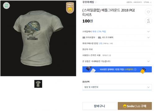 배틀그라운드 PGI 티셔츠 2018을 스마일클럽 전용 5천개 한정이라고 합니당