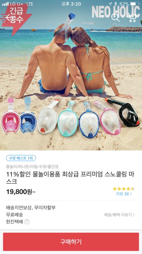 풀페이스 스노쿨링마스크 사망사고 이슈 있습니다 참고하세요