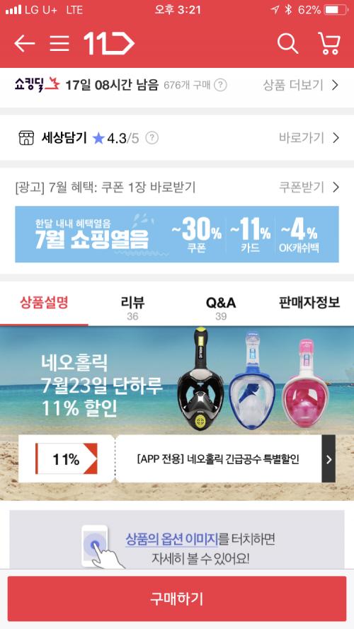 판매가 19,800원인데 11%할인쿠폰 적용해서 17,630원이에요 쿠폰은 오늘까지니 참고하세요~