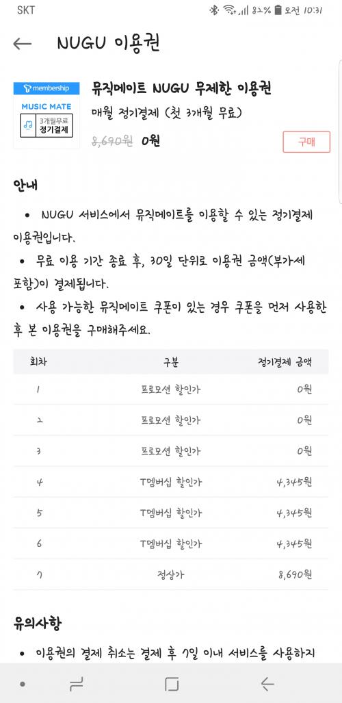 누구 어플에서 뮤직메이트 3개월 무제한 이용권 무료네요.