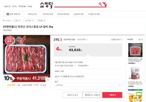 11번가에서 쇼킹딜 행사로 미국산 초이스등급 LA갈비 2키로 행사를 하네요
