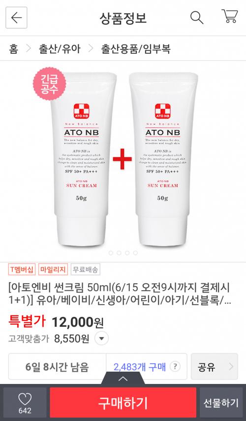 그러면 8550원에 선크림 2개를 살 수 있습니다.
