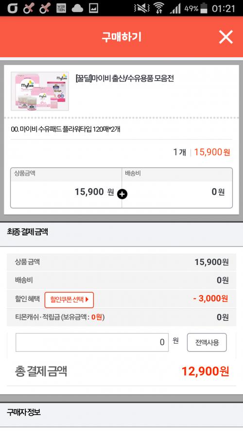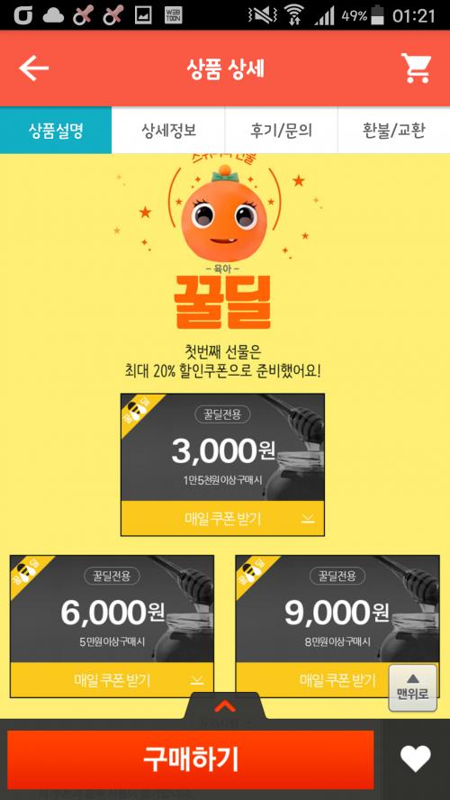 2. 꿀딜 쿠폰 1만5천이상 3천원 할인 쿠폰을 다운받습니다.