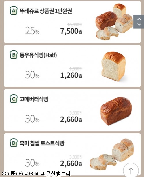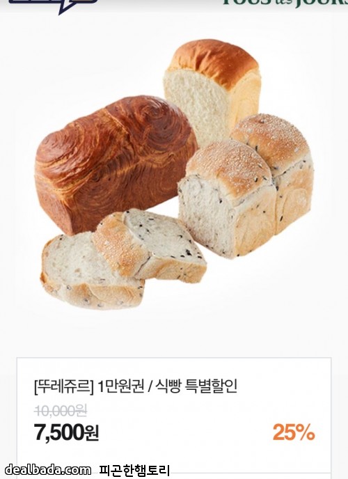티몬에서 뚜레쥬르 상품권 25%, 단품 30% 할인 판매중입니다