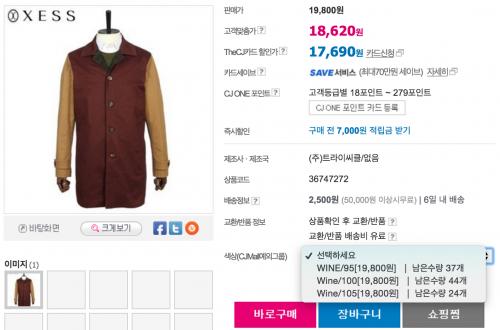 아참, 재고 상황도 함께 캡쳐했으니.. 확인하시고 먼저 구매하시는분이 이 옷의 주인이 되십니다 ㅎㅎ | ||