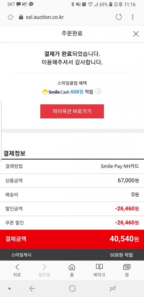 스마일 클럽 회원이시면 위 두개 쿠폰 적용 시 40,540원에 구입 가능합니다.