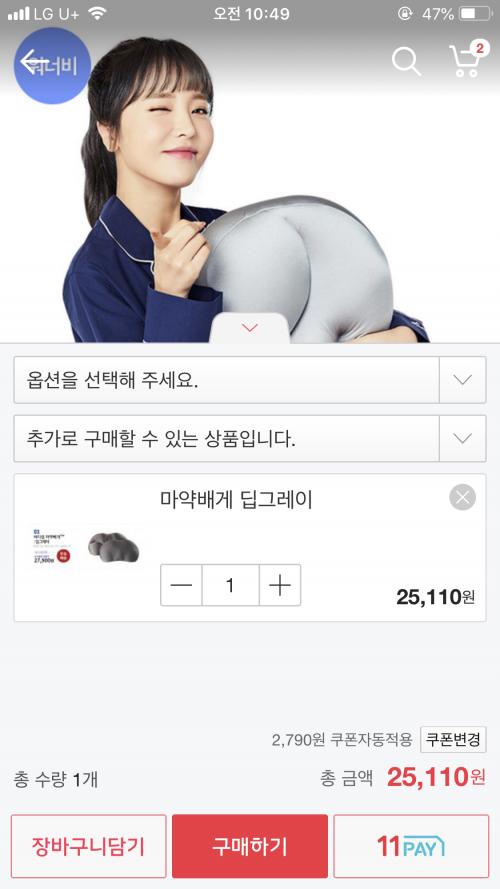 [11번가]바디럽 마약베개 25,110원 (워너비 10% 쿠폰 중복적용)(무배)