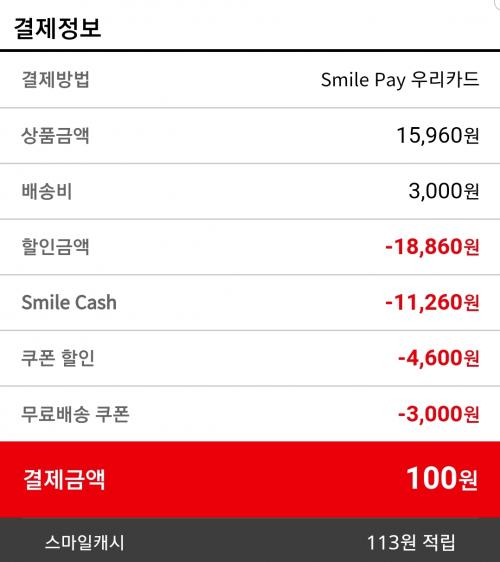 스샷 보시면 113원적립이라고 나와있는데 전액을 스마일캐시로 결제하시면 적립이 0캐시가 돼서 손해에요 결론은 최소금액을 결제해서 적립을 받기 위해서 그런거에요 잘 사셨다니 다행이네요 ㅎㅎ | ||