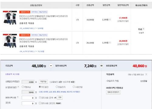 자체할인2200원하고 카드할인해서 7200원정도 할인되가지고 총 40860원이네요..