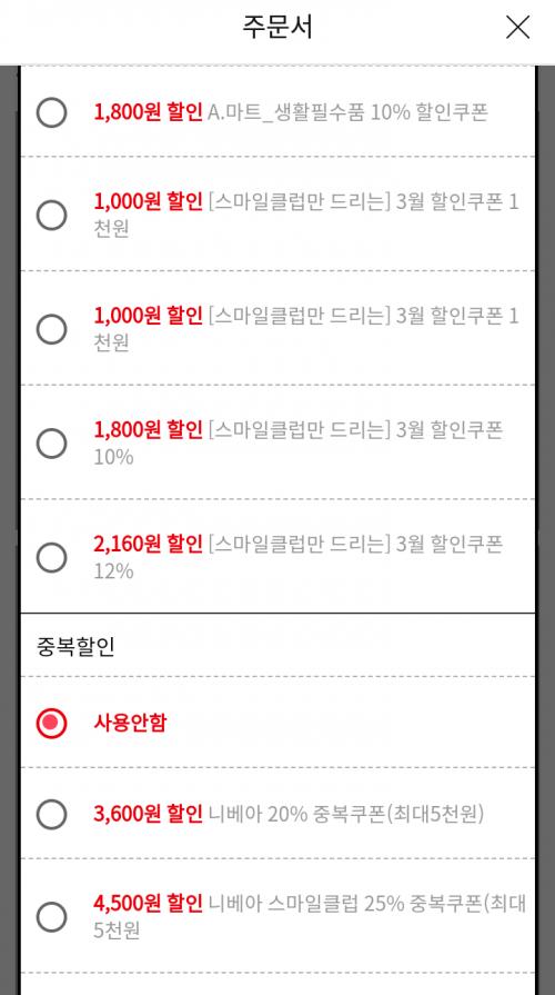 2개기준 일반회원이시면 생활필수품 10% + 니베아 20% + 카드 할인 적용하시고 스마일클럽회원시 등급 12% + 니베아 25% + 카드할인 적용하시면 됩니다.
