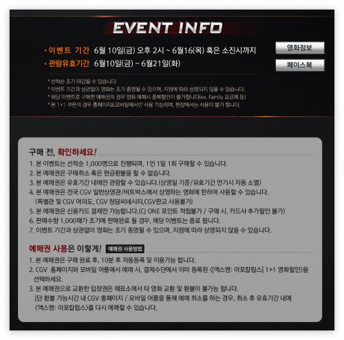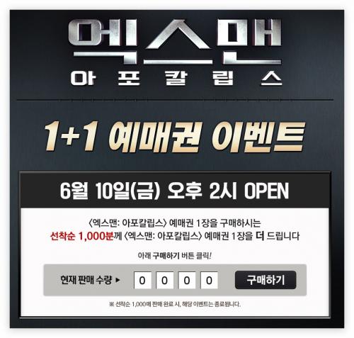 오늘 오후 2시부터 선착순 1000분에게 1+1 예매권 발매이벤트 진행합니다.