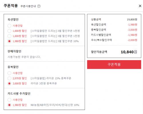 2세트 구매하면서 옥션 기본쿠폰에 중복쿠폰, 카드할인까지 적용하면 됩니다.