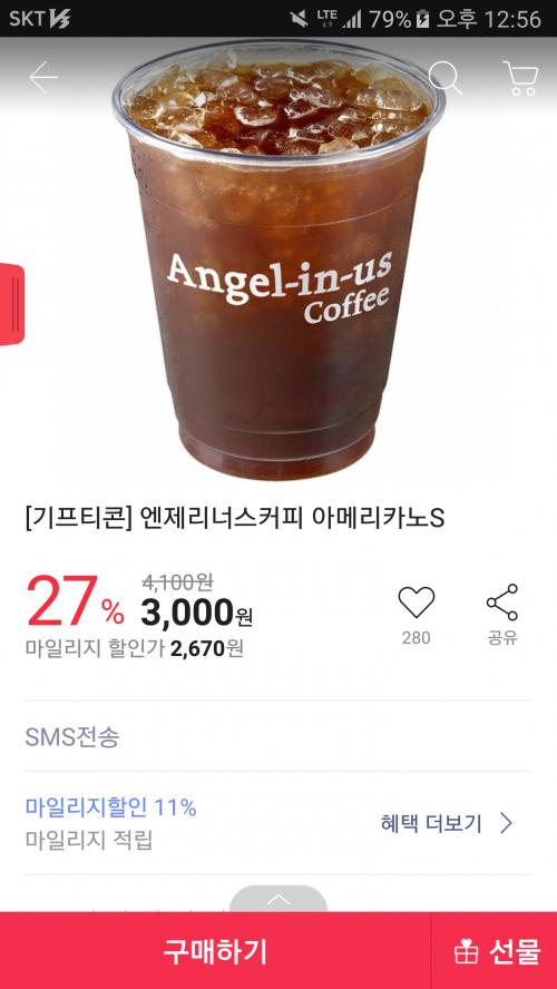엔젤리너스는 금액권 형태가 아니라 구매안하게되네요.