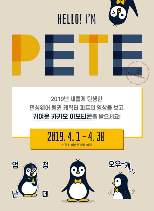 먼싱웨어에서 피트 팽귄캐릭터 카카오 이모티콘 180일을 무료로 주고있습니다. 위에 링크로 들어가셔서 짧은 영상