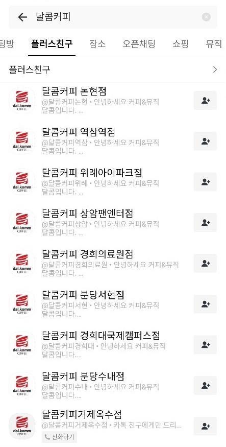 진처럼 여러 동네 매장이 있는데 아무매장이나 플러스친구 하시면 위에 사진처럼 아메리카노 무료쿠폰이 카카오톡