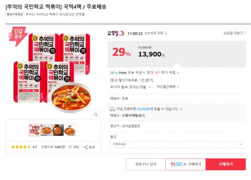 챙기려면 https://www.ebates.com/kr/coupons/11st '국떡4팩' 검색해서 구매하면 됩니다~!