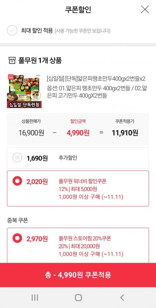 풀무원워너비 12% 쿠폰+풀무원스토어찜 20%쿠폰 적용