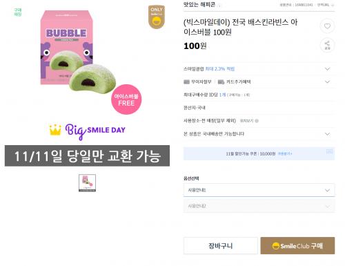지마켓에서 배스킨라빈스 아이스버블 기프티콘을 100원에 팔고있습니다. 11월 11일 오늘 당일만 사용가능하며