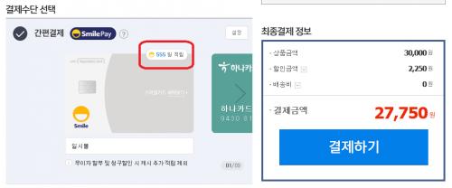 지금과 비슷한 딜로 지난 12월 24일에 7%할인 + 스마일카드 2% 적립하는게 있었는데,