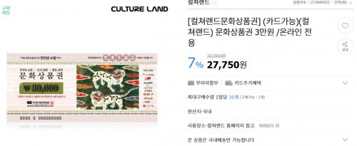 일반 구매자는 7.5% 할인딜이라 평범한 컬쳐캐시지만