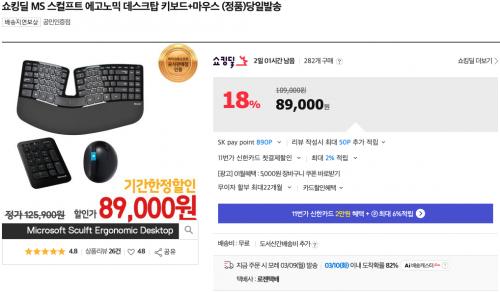 MS의 인체공학 설계 무선 키보드 + 마우스 세트, 스컬프트 어고노믹 데스크탑입니다.