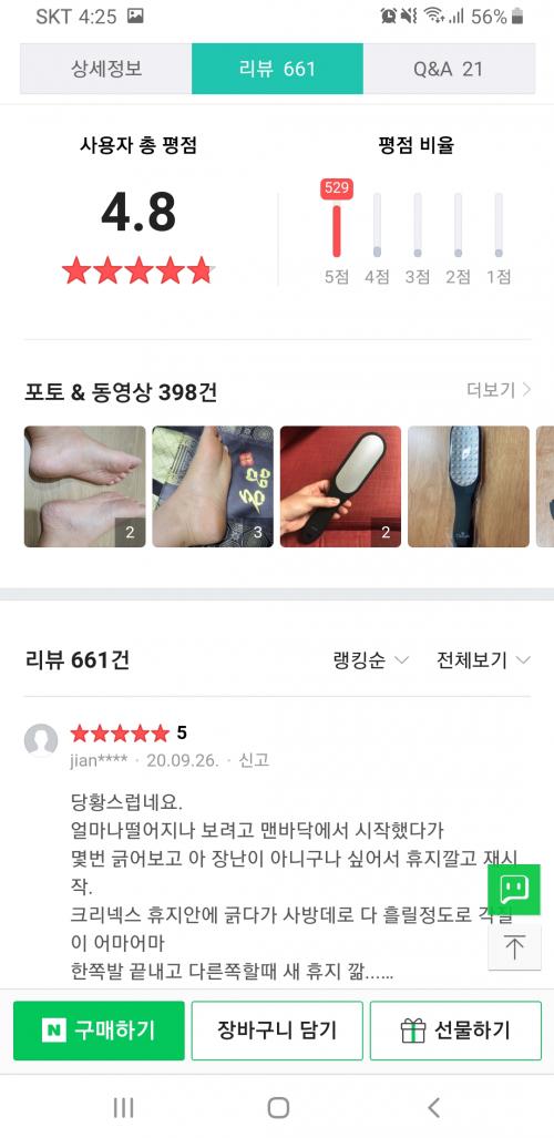 발뒤꿈치가 갈라져서 맨날 이불에 긁혔...는데 이걸로 한번 밀고나니 엄청 부드러워졌어요
