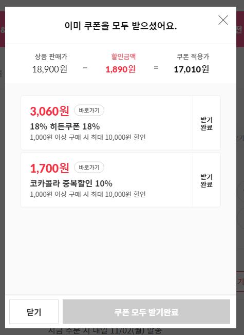 [11번가] 코크 제로 캔 355ml 24개 (13,950/0)
