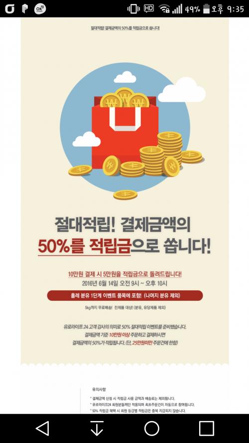 가끔 50프로 적립 이벤트를 해요.