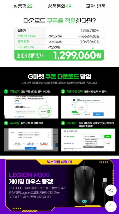 삼카 할인 적용시 1299060원 나와요