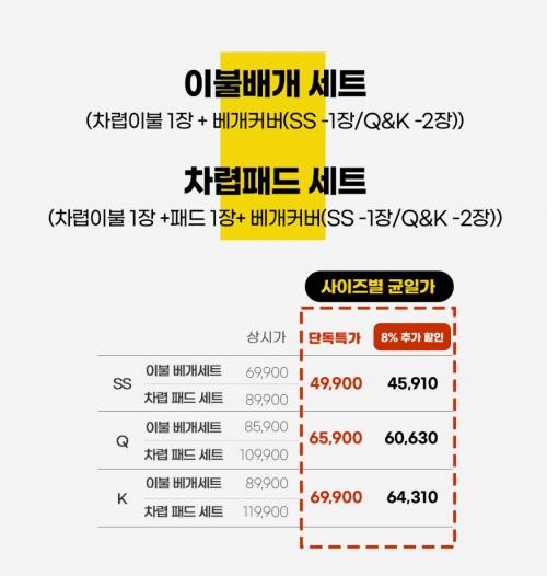퀸사이즈는 이불솜+베개솜 2개 세트니 참고하시면 될 거 같습니다.