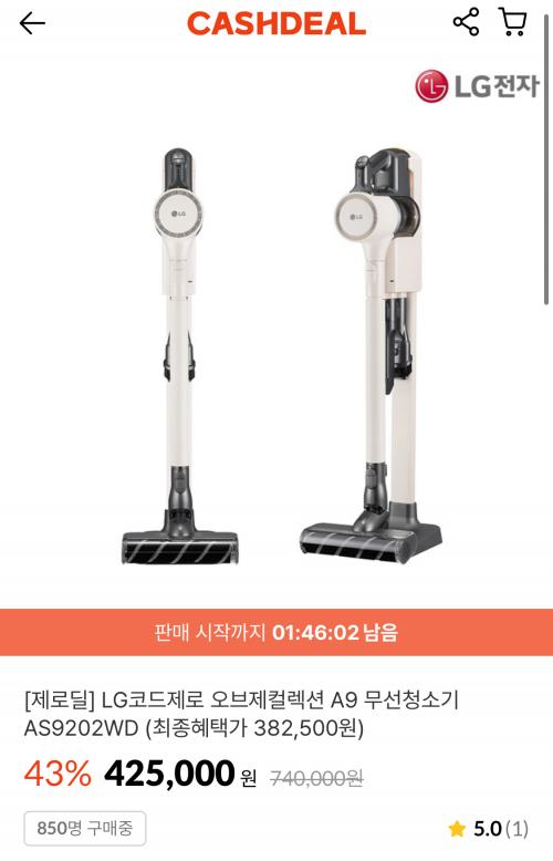 10% 캐시적립되고 체감상 382,500원 정도로 산다고 보시면 될거 같네요.