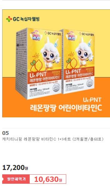 캐치티니핑 레몬팡팡 비타민C 60포 쿠폰 적용시 12,900원에 무료배송입니다.