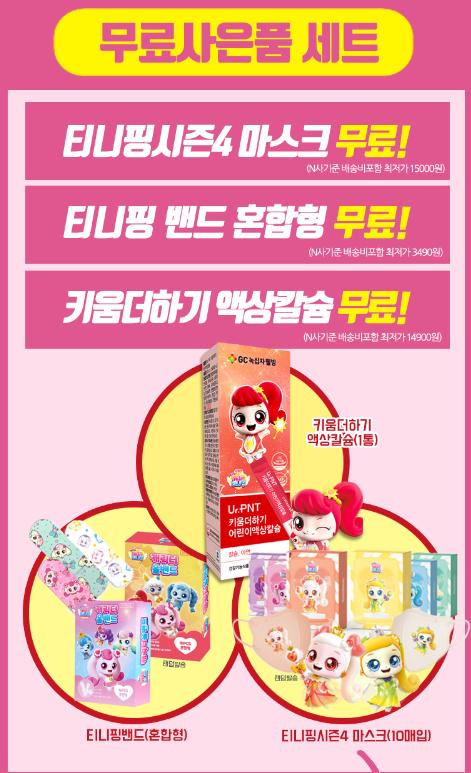 영양제 종류 다양하게 있고 3개 구매시 사은품 티니핑마스크10장+티니핑밴드+티니핑액상칼슘 1통있습니다