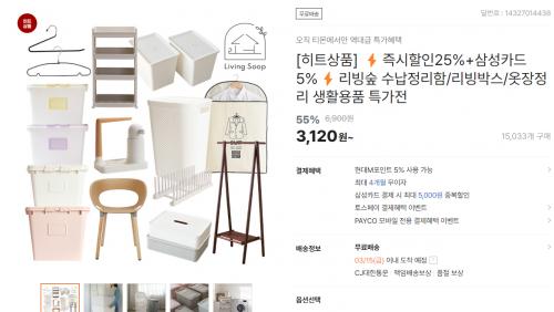 [티몬] 생활/수납용품 할인 (3,120~ 원~/무료) > 국내핫딜