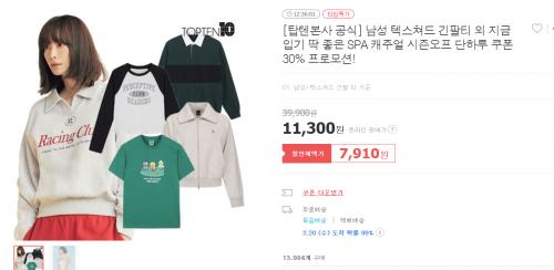 [위메프] 탑텐 남성 텍스쳐드 긴팔티 외 지금 입기 딱 좋은 SPA 캐주얼 시즌오프 단하루 쿠폰 30% 프로모션 (7,910원~/무료)