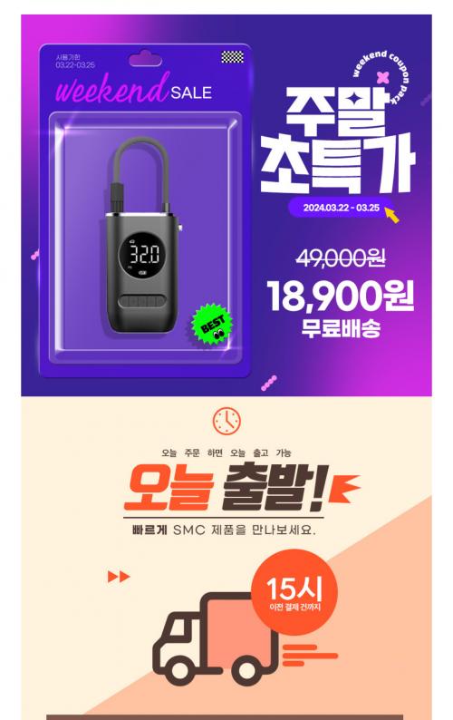 [네이버] SMC 늘바론 무선 에어펌프 공기주입기 자동차(17,900원/무료) > 국내핫딜