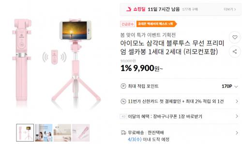 [11번가] 아이모노 삼각대 블루투스 무선 셀카봉 (9,900원/무료) > 국내핫딜