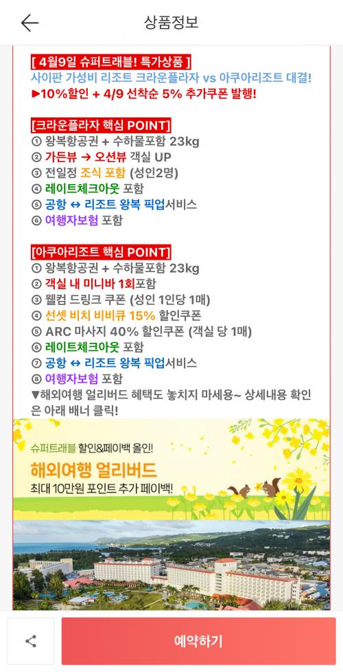 사이판 휴양하기 좋다고 요즘 많이 가던데 위메프 특가로 15% 할인중이라 39만원대부터 있네요