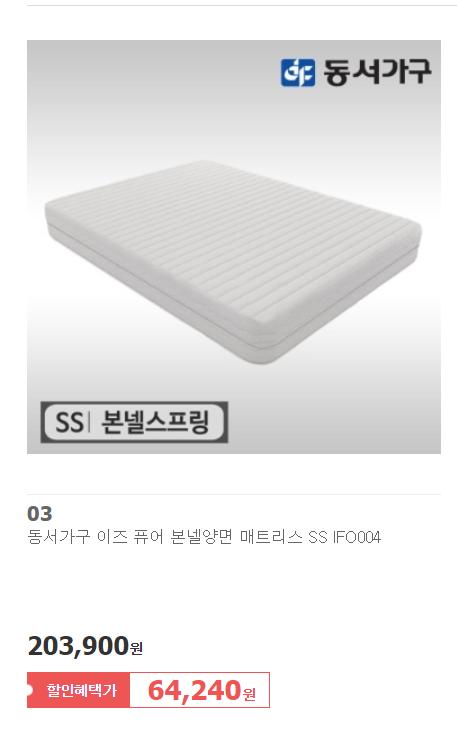 [위메프] 동서가구 이즈 퓨어 본넬양면 매트리스 SS (64,240원/22,000원) > 국내핫딜