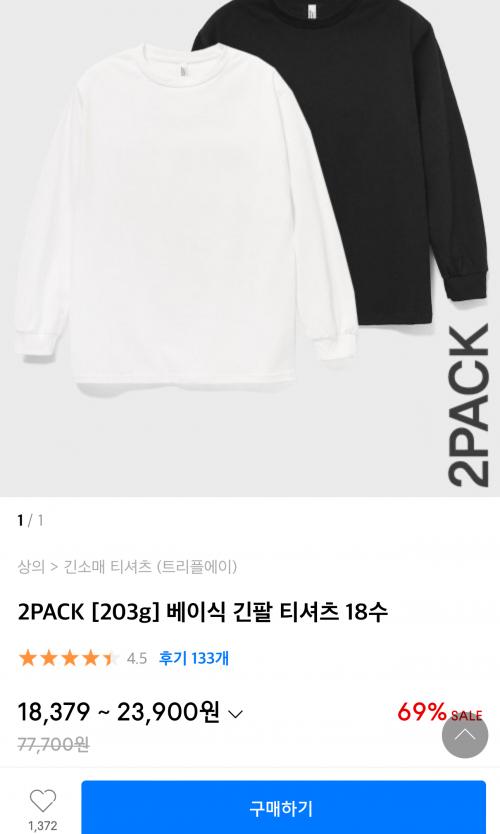 [무신사]2PACK [203g] 베이식 긴팔 티셔츠 18수(19,837/무료) > 국내핫딜