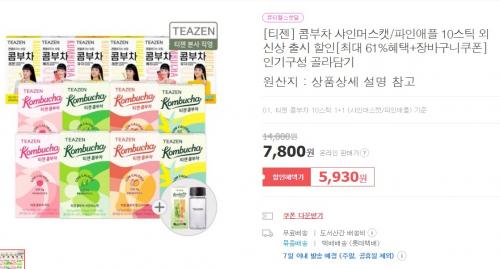 티젠 콤부차 10스틱 1+1 총 20스틱 쿠폰 적용시 5,930원 나옵니다.
