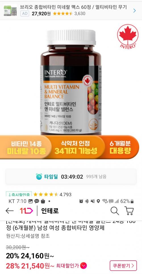 종합비타민중에서는 극가성비 제품입니다.