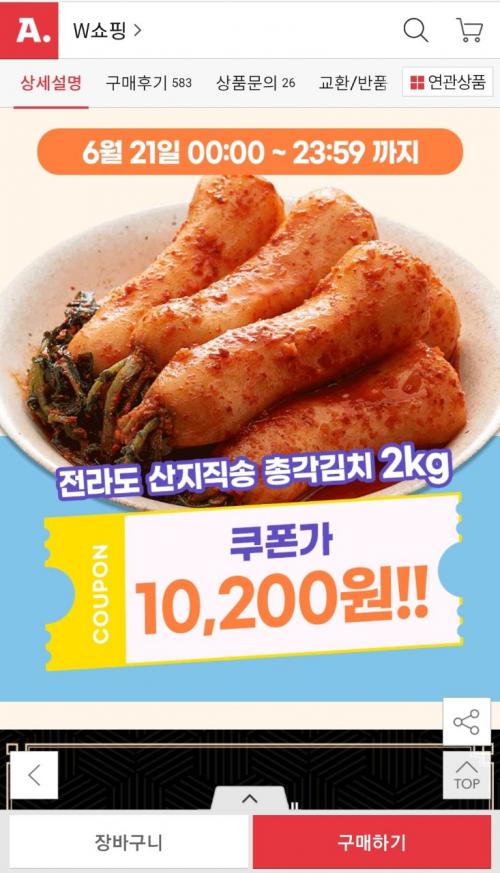 ​21일 단하루 세일로 총각김치 2키로 10,200원 입니다
