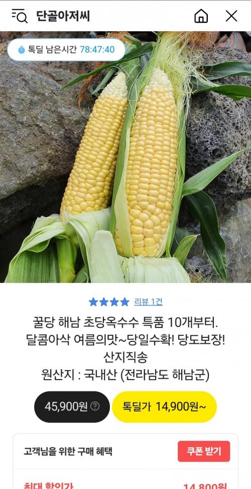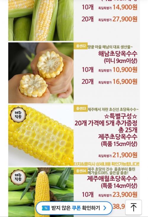 [카카오] 해남 초당옥수수 특품 10개입 16cm내외 (14,900/무배) > 국내핫딜