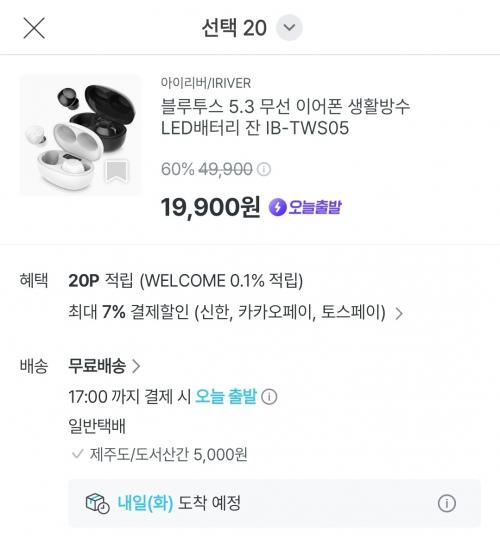 [오늘의집]블루투스 5.3 무선 이어폰 생활방수 LED배터리 잔 IB-TWS05(19,900원/무배) > 국내핫딜