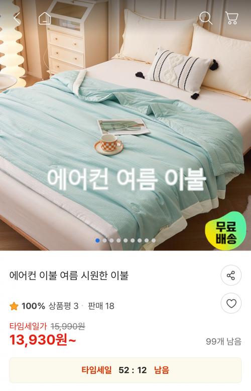 [위시플러스] 에어컨 이불 여름 시원한 이불 (13,930원/무료) > 국내핫딜