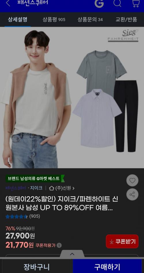 정상가보다 87프로할인된 가격도 15,530이여서 부담도 덜되고 스타일도 무난해서 필요하신분들은 입어보셔도 좋을듯 합니다