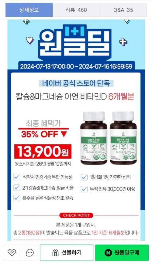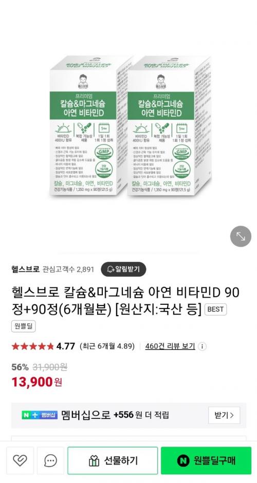 [네이버원쁠딜] 칼슘&마그네슘 아연 비타민D 6개월분 (13,900/무배) > 국내핫딜